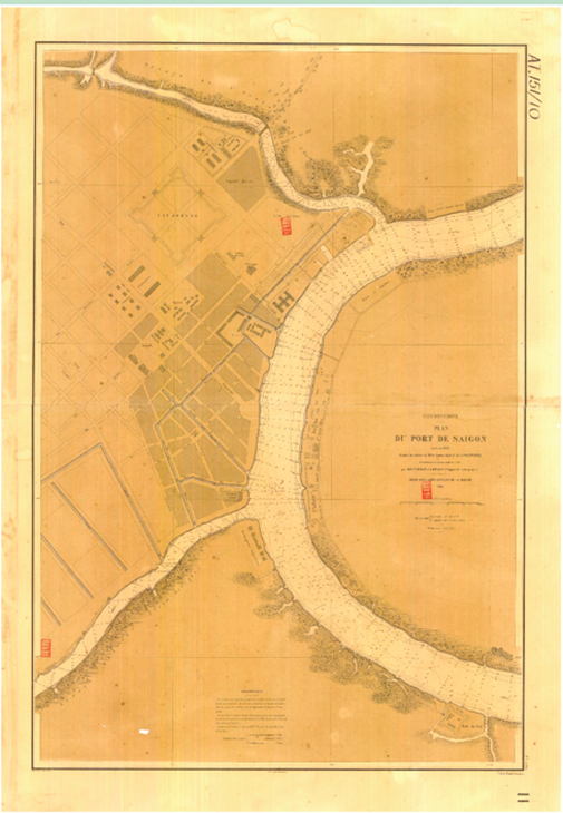BẢN ĐỒ CẢNG SÀI GÒN ĐO ĐẠC NĂM 1863.
